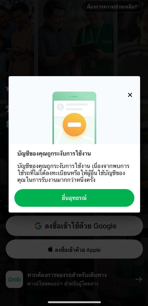 เมื่อก่อนรหัสแกร็บไรเดอร์ของผมเคยถูกระงับ